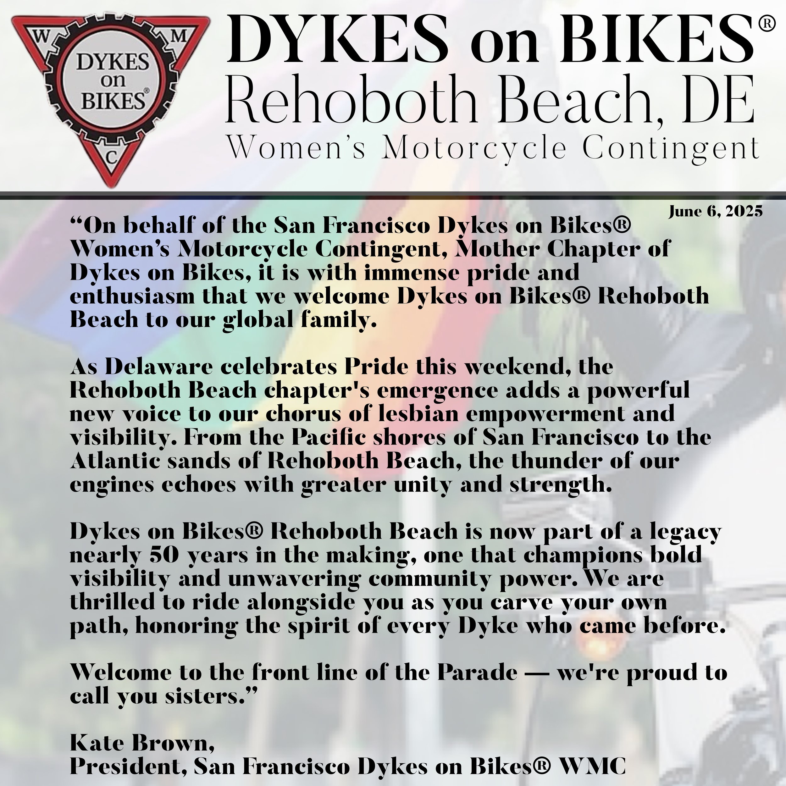 In 2026 Dykes on Bikes® WMC celebrates 50 years!